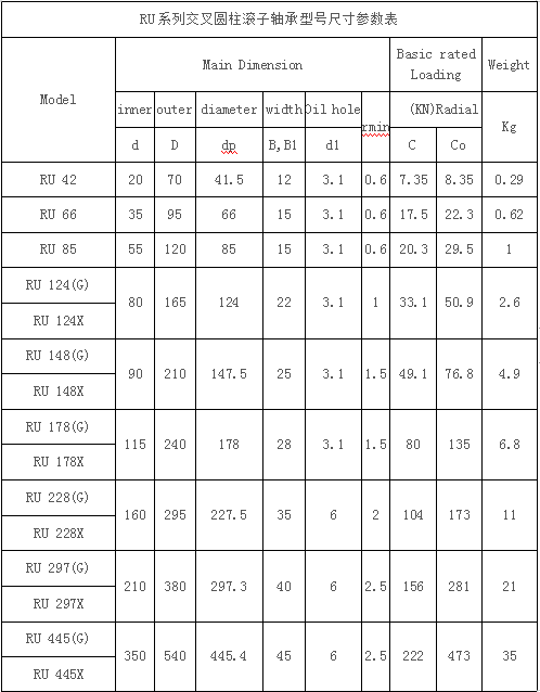 JSX系列交叉圓柱滾子軸承型號尺寸參數(shù)